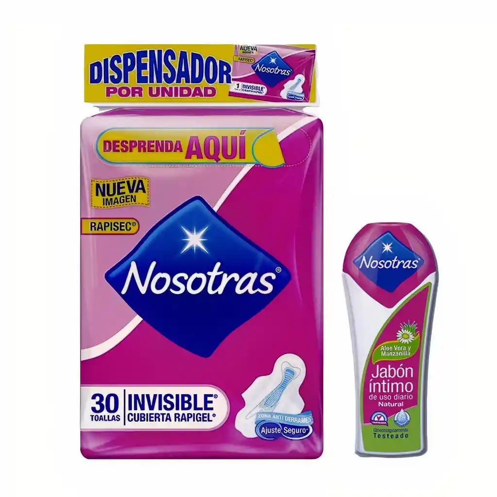 Vienen 30 toallas invisibles que absorben tanto como una toalla normal, lo que da mayor seguridad, contienen una cubierta Rapisec para que siempre estés limpia y seca. El jabón íntimo de 110 mL contiene extracto de algodón, ingrediente natural, suave y delicado con tu piel, aroma suave que no irrita.