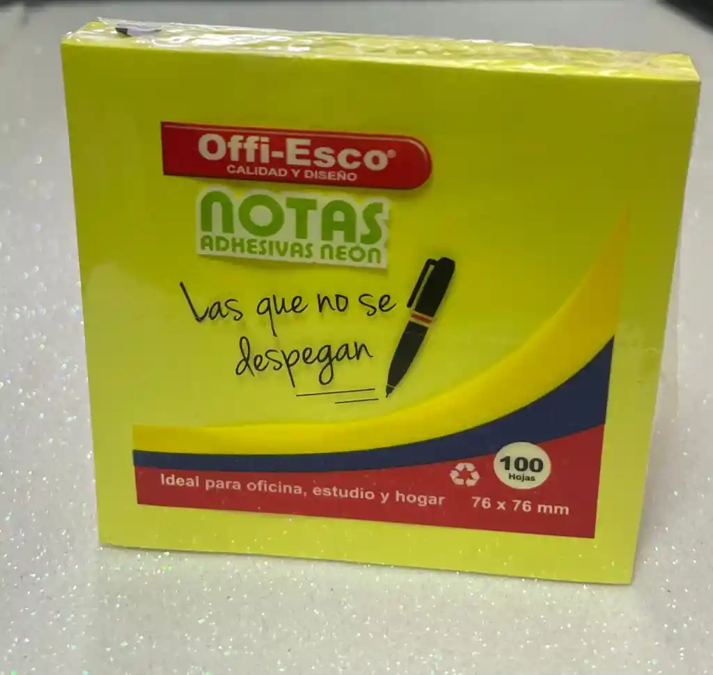 ¡Las notas que no se despegan! 📝✨ ✨En IMPREKOLOR SAS te traemos las notas adhesivas Offi-Esco en colores neón vibrantes. Son perfectas para dejar recordatorios, organizar tus estudios o complementar tus cuadernos personalizados sin miedo a que se caigan. ✨Contenido: 100 hojas de alta adherencia. ✨Tamaño: 76 x 76 mm (Cuadradas estándar). ✨Colores Neón: Amarillo, Rosado, Verde y Naranja de alta visibilidad. ✨Uso Versátil: Ideal para oficina, estudio y hogar. ✨⚡ ¡ORDENA YA!: Lleva el pack de 4 colores surtidos para superar el mínimo de compra y recibir tu pedido hoy mismo. 📲 315 388 0960