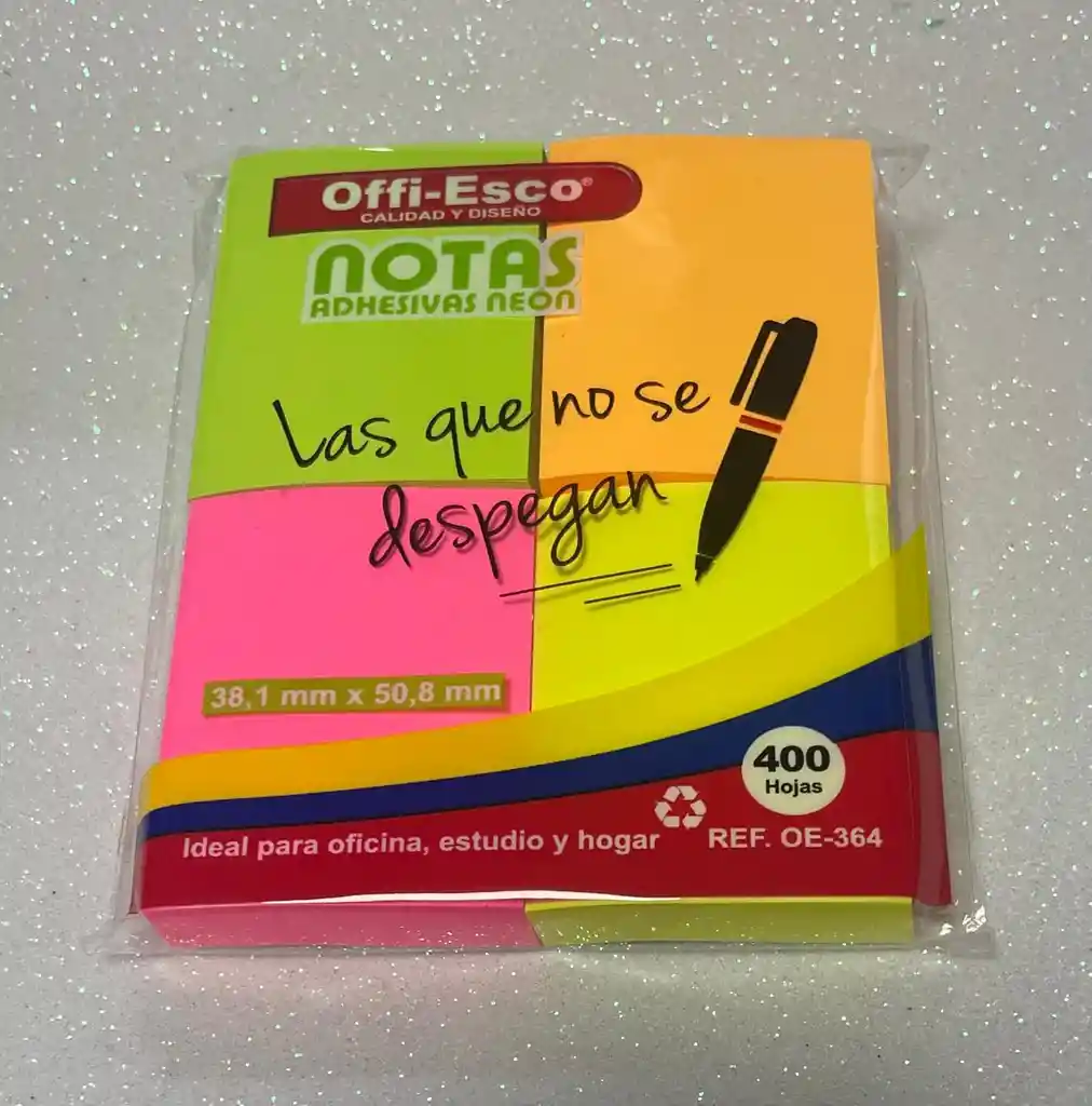 ¡Organiza tus ideas con colores que resaltan! 📝🌈 En IMPREKOLOR SAS te traemos las notas rectangulares Offi-Esco, las favoritas para quienes necesitan un adhesivo confiable y duradero. Su formato compacto es perfecto para resaltar secciones en tus cuadernos personalizados o documentos de oficina. Gran Contenido: 400 hojas por bloque (100 de cada color). Medidas: 38,1 x 50,8 mm (Ideales para notas cortas). Colores Neón: Amarillo, Rosado, Verde y Naranja de alta visibilidad. Alta Adherencia: Se pegan y despegan sin dejar residuos en tus libros o pantallas. ⚡ ¡PRECIO ESPECIAL!: Aprovecha el 30% de descuento y completa tu pedido de $16.000 hoy mismo. 📲 315 388 0960