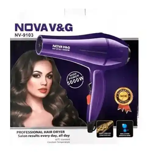Secador Nova caliente - frio high power 5000 Watts, previene la resequedad y perdida de humedad en el cabello gracias a su función iónica, 3 niveles de temperatura y diseño ergonómico, incluye boquilla para mejor funcionamiento.