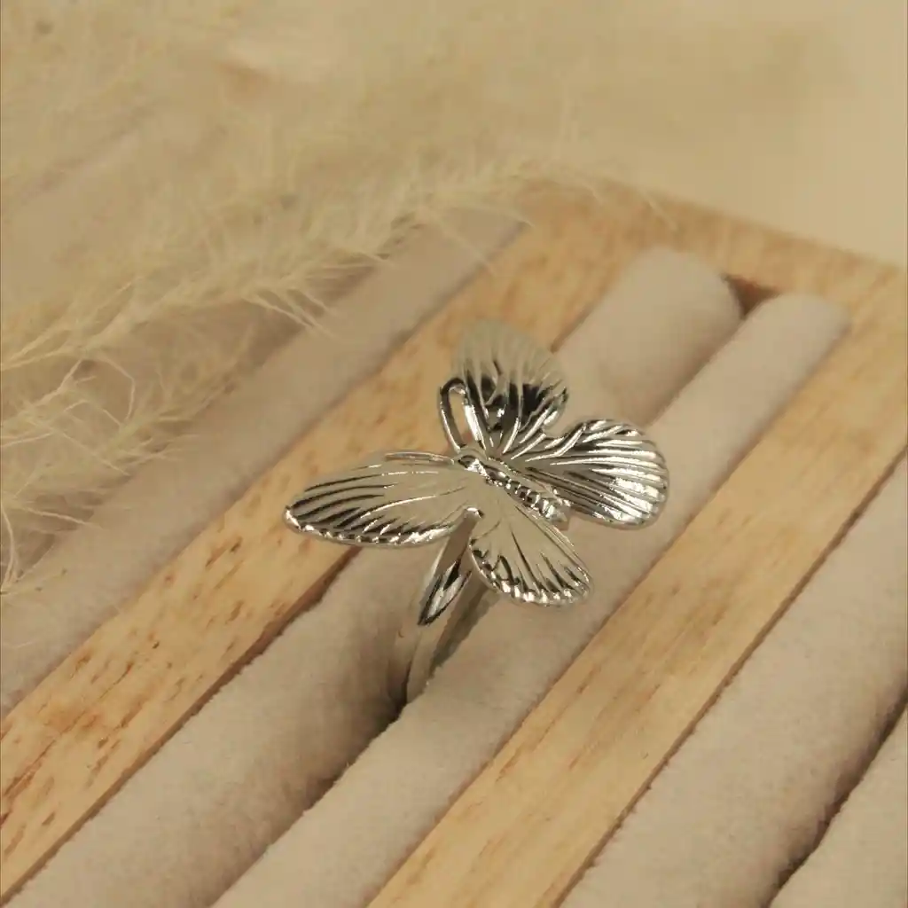 Nudillo en rodio plateado antialérgico, diseño mariposa, ajustable y cómodo✨
