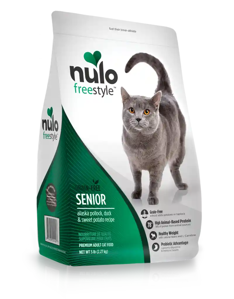 Proteína bruta: 38% Grasa bruta: 14% Ingredientes principales: abadejo de Alaska, pato y patatas dulces. Esta deliciosa receta tiene fuentes de proteína como pato y abadejo de Alaska, combinadas con ingredientes completos tales como lentejas rojas y verdes para mantener joven el espíritu de tu gato por muchos años. Con 75% de proteína proveniente de fuentes animales, esta receta ofrece proteína de alta calidad que satisface a tu pequeños carnívoro en cada bocado para ayudarlo a estar bien en sus años dorados. Tiene además L-Carnitina que ayuda al metabolismo de las grasas como fuente de energía; nuestra receta Senior para gatos mayores ofrecerá la nutrición que tu gato necesita para mantenerse vibrante y sano por muchos años BENEFICIOS: •Peso saludable: con L-carnitina y pasto de miscanto. •Vitamina A y taurina para mantener la buena visión. •Menos carbohidratos. •Antioxidantes para una mejor salud. •Omega 3 y 6 para la piel y el pelaje. •Forma de disco pequeño: los gatos aman la textura y el sabor. •Músculos esbeltos y corazon saludable. •Ventaja del probiótico GANEDENBC30®