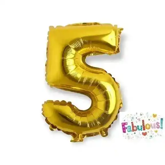 Numero 5 Inflable Metalizado color Dorado de 16 a 18 pulgadas (43 Cm)