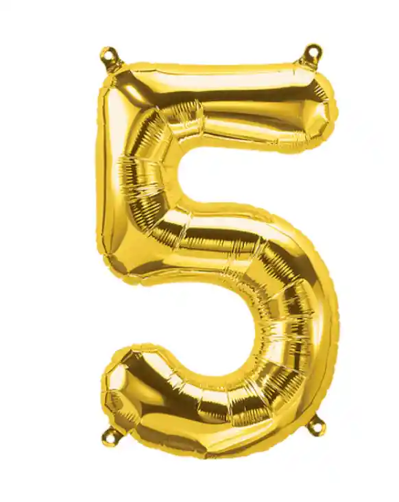 Numero 5 Inflable Metalizado color Dorado de 16 a 18 pulgadas (43 Cm)