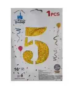 NUMERO INFLABLE 5 16"-18" 43 CMS DORADO ESCARCHADO. Para inflar su letrero, números, globos metalizados y globos de látex, tenemos disponible en nuestra tienda el INFLADOR MANUAL. No olvide incluirlo en su pedido