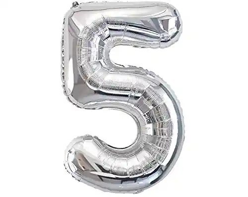 Numero 5 Inflable Metalizado Plateado 16"-18" 43 Cm