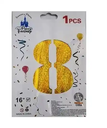 NUMERO INFLABLE 8 16"-18" 43 CMS DORADO ESCARCHADO. Se envía desinflados, para inflar su letrero, números, globos metalizados y globos de látex, tenemos disponible en nuestra tienda el INFLADOR MANUAL. No olvide incluirlo en su pedido