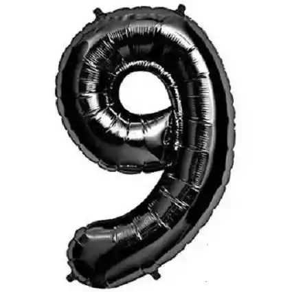 Numero 9 Inflable Metalizado Negro 32" 82 Cm. el producto te llega desinflado, puede solicitar el inflador manual.