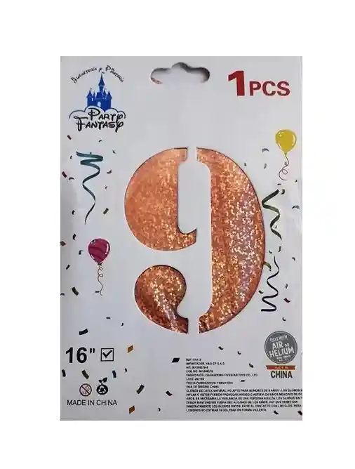 NUMERO INFLABLE 9 16"-18" 43 CMS ORO ROSA ESCARCHADO. Para inflar su letrero, números, globos metalizados y globos de látex, tenemos disponible en nuestra tienda el INFLADOR MANUAL. No olvide incluirlo en su pedido