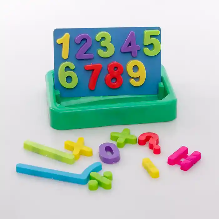 Números imantados para usar en operaciones matematicas. Contiene 18 piezas entre números y símbolos.