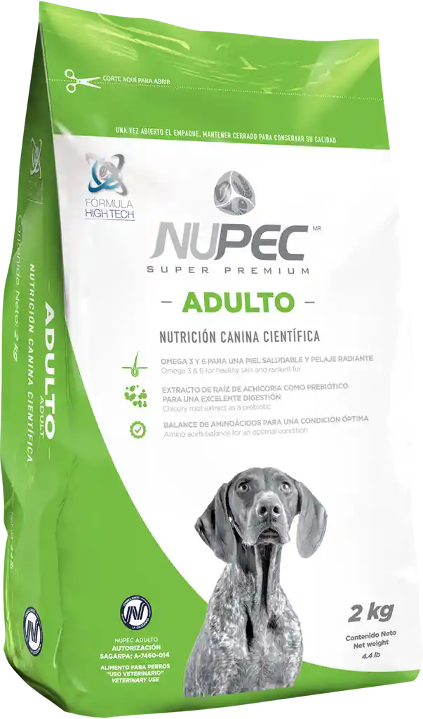 ALTA DIGESTIBILIDAD Balance nutricional entre proteínas, grasas, carbohidratos, vitaminas y minerales, ingredientes de la más alta calidad y procesos de alta tecnología que garantizan un máximo aprovechamiento nutricional. CON ZINC Fundamental para la síntesis de las proteínas y ácidos nucleicos, claves en la inmunidad del canino. ALTA PALATABILIDAD DESARROLLADA POR EXPERTOS Sabor, aroma y textura únicos para NUPECMR. Inyección del palatante al alto vacío, asegurando un sabor único e irresistible desde adentro de la croqueta hacia afuera. CONSERVADORES NATURALES Mezcla de romero y tocoferoles que garantizan la frescura en cada croqueta, gracias a sus propiedades antioxidantes que protegen al alimento de la oxidación. FUENTE DE PROTEÍNA DE ALTA CALIDAD Tecnología de punta que permite la inclusión de carne fresca directamente en el proceso de extrusión. Mas del 90% de digestibilidad de la proteína. VITAMINAS A, B, C Y E Brindan una piel saludable y un pelaje hermoso.