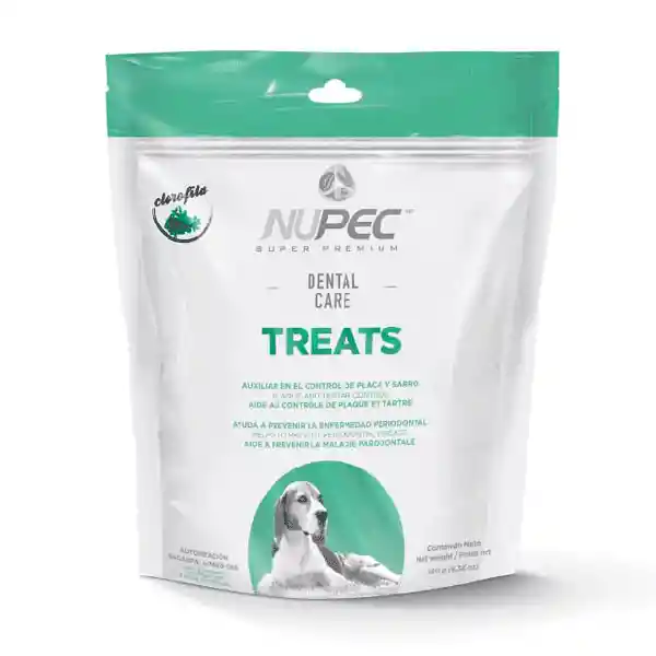Nupec Can Treats Dental Care 0.18 kg son snacks dentales para perros, formulados para promover la salud bucal mientras tu perro disfruta de un premio delicioso y crujiente.