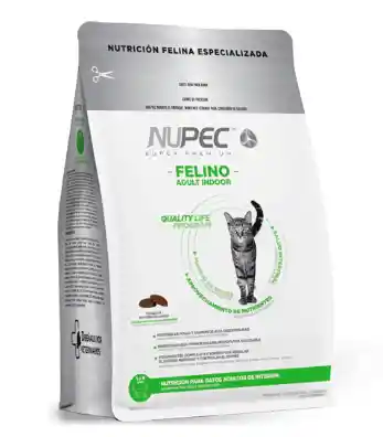 Nupec Felino Adult Indoor es un alimento balanceado para gatos adultos de interior que ayuda a mantener un peso saludable, controlar el estrés y favorecer una digestión óptima, con proteínas de alta calidad.