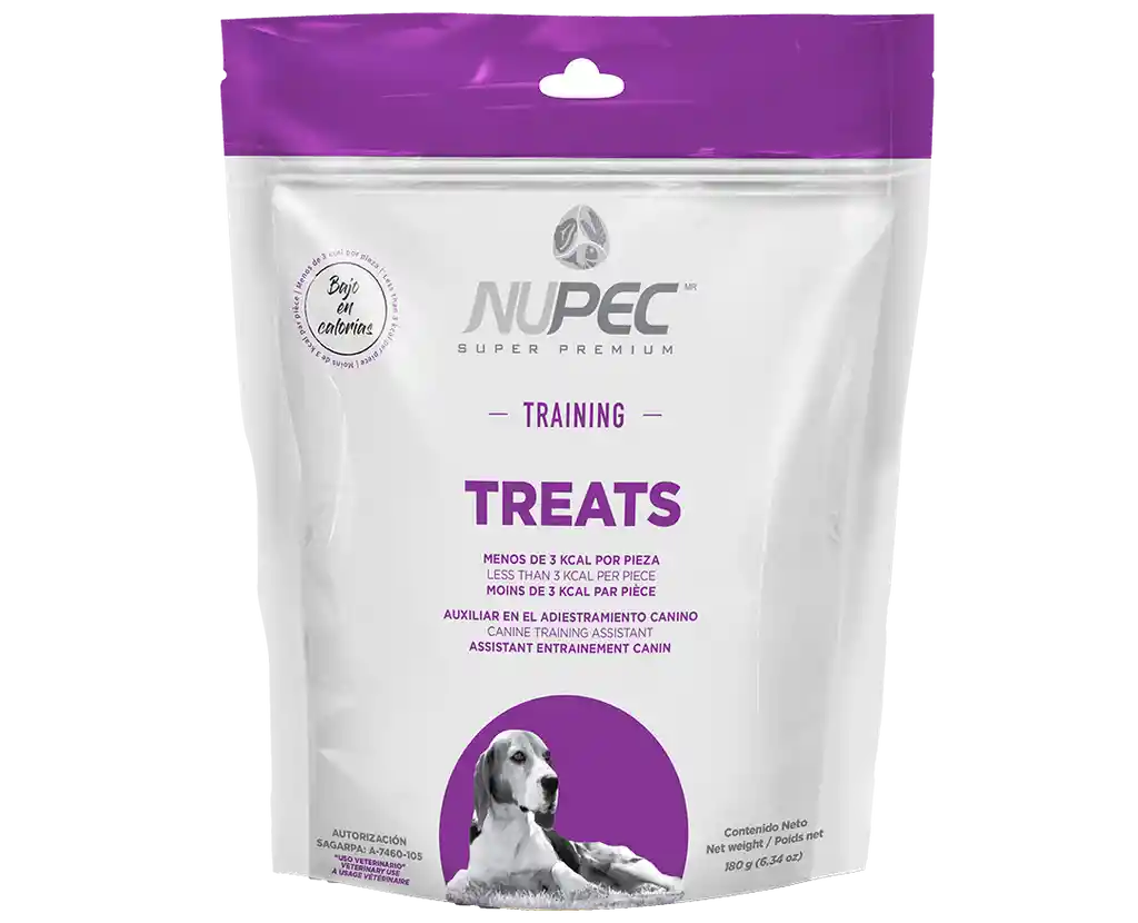 Los Nupec Treats Training para perros, son los snacks ideales para tu peludo, le van a encantar y te ayudarán a entrenarlo de una manera eficaz y divertida. Los Treats Training están desarrollados como premios bajos en calorías que permiten que puedas dar un snack a tu perro varias veces durante sus sesiones de entrenamiento. Beneficios: - Tienen un aroma y sabor irresistibles - Contienen menos de 3 calorías por unidad - Auxiliar en adiestramiento canino