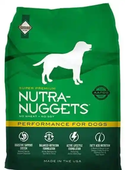 Alimento completo para perros adultos.Nutra-Nuggets Performance Formula contiene la cantidad perfecta de nutrientes para la salud y el rendimiento de perros atléticos o activos. El 18 por ciento de contenido de grasa ayuda a aumentar la resistencia. mientras que el 28 por ciento de proteína ayuda a promover la reparación y el mantenimiento de músculos fuertes. Niveles equilibrados de ácidos grasos omega completan esta fórmula avanzada. para la salud óptima de su compañero de alto rendimiento.