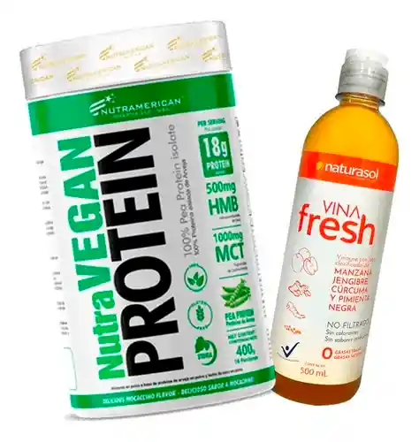 Recibirás Nutra Vegan Protein 400g + Vina Fresh Proteína Vegana + Vinagre de Manzana y Miel de Abejas El equilibrio perfecto entre fuerza y bienestar. Este combo une una proteína vegana de alta calidad (18g por porción), rica en aminoácidos, con el poder digestivo y depurativo del vinagre de manzana, y el toque natural y energético de la miel de abejas. Una combinación ideal para quienes buscan recuperación muscular, energía sostenida y digestión ligera. - Apoya tu sistema inmune. - Mejora la digestión y reduce la hinchazón. - Sin lácteos, sin azúcar añadida, sin culpa. ¿Cómo tomarlo? Toma una porción de proteína mezclada con agua o bebida vegetal, 30 minutos después del ejercicio o en cualquier momento del día como snack. Acompáñala con 1 cucharada del vinagre con miel diluido en agua tibia, en ayunas o antes de las comidas principales. Proteína Vegana + Vinagre de Manzana, Alcachofa y Cidra Détox inteligente + proteína funcional. ¿Quieres depurar tu cuerpo sin sacrificar tu nutrición? Este combo une nuestra proteína limpia con un vinagre de manzana mejorado con alcachofa (diurética y hepato-protectora) y cidra (refrescante, alcalinizante). Perfecto para quienes buscan definir, desinflamar y sentirse livianos sin perder músculo. - Mantén tu masa muscular. - Apoya la limpieza hepática y renal. - Ideal para periodos de definición o reinicio metabólico. ¿Cómo tomarlo? Mezcla tu scoop de proteína con agua fría y toma una vez al día, idealmente en la mañana o después del entrenamiento. El vinagre puede tomarse en ayunas o 20 minutos antes del almuerzo: 1 cucharada en 200 ml de agua. Proteína Vegana + Vinagre de Manzana, Jengibre, Cúrcuma y Pimienta Negra Inflamación bajo control y energía encendida. Este es el combo antiinflamatorio definitivo. A la proteína vegana le sumamos una mezcla termogénica y antiinflamatoria con jengibre, cúrcuma y pimienta negra: perfecta para mejorar la digestión, la circulación y combatir la inflamación crónica. Ideal para deportistas, personas con dolor muscular o quienes buscan un estilo de vida más saludable. - Apoya la recuperación y el metabolismo. - Fortalece tu sistema inmune. - Sin ingredientes artificiales. ¿Cómo tomarlo? Disuelve el scoop de proteína en agua o bebida vegetal después del ejercicio o como merienda. El vinagre con cúrcuma y jengibre es ideal en ayunas o antes de dormir, diluido en agua caliente como una infusión funcional: 1 cucharada en 250 ml. IMPORTANTE: Todos nuestros productos son originales y certificados con registro INVIMA, directamente desde el laboratorio, sus fechas de vencimiento no son próximas, nuestros productos son totalmente nuevos. Puedes visitar nuestra tienda aquí en rappi y encontrar más de nuestros combos.