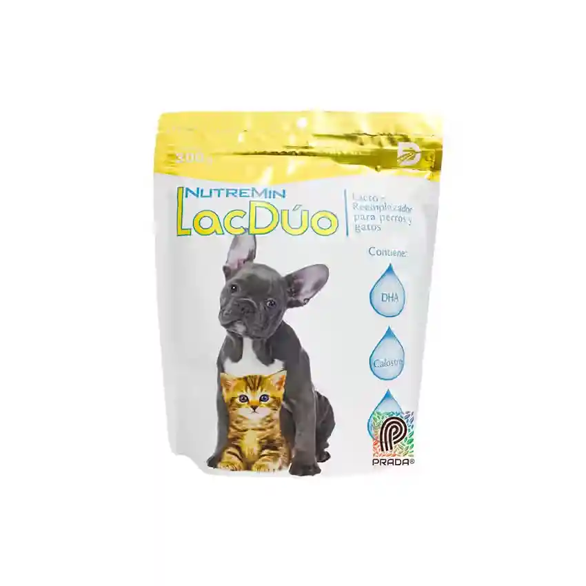 Nutremin Lac Duo por 300 gr. es un suplemento alimenticio en polvo desarrollado especialmente como sustituto de la leche materna para cachorros de perros y gatos en su etapa de lactancia. Este producto contribuye al desarrollo óptimo de los pequeños, apoyando el fortalecimiento del sistema nervioso central, el desarrollo cognitivo, y la salud intestinal. Además, su formulación promueve el crecimiento celular y tiene propiedades antiinflamatorias. Desarrollo óptimo del sistema nervioso central y cognitivo Salud intestinal mejorada gracias a probióticos y prebióticos Crecimiento celular promovido gracias a su completa composición Efecto antiinflamatorio que asegura el bienestar general del cachorro