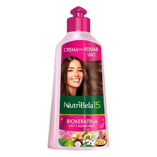 Crema para Peinar Nutribela Biokeratina 300 ml que ayuda a controlar el frizz, mejorar la suavidad y facilitar el peinado.
