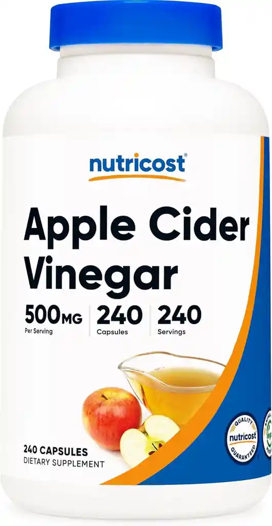 Suplemento de vinagre de sidra de manzana de Nutricost's de alta calidad El vinagre de sidra de manzana está hecho del jugo fermentado de manzanas trituradas. El vinagre de sidra de manzana contiene cantidades significativas de ácido acético. El ácido acético constituye alrededor del 5-6% del vinagre de sidra de manzana. Se clasifica como un "ácido débil", pero aún tiene propiedades ácidas bastante fuertes cuando se concentra. Además del ácido acético, el vinagre contiene trazas de otros ácidos, vitaminas y minerales.