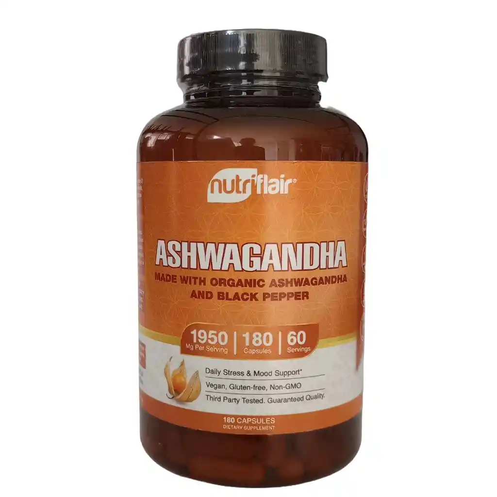 Nutriflair Ashwagandha Organica Con Pimienta Negra - Soporte Sistema Nervioso 1950 Mg 180 Cápsulas