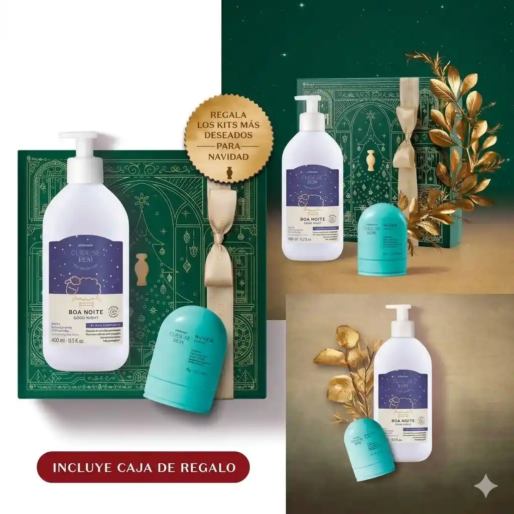 Un regalo de Navidad para quienes amas y quieres cuidar. Este kit de cuidado corporal incluye una loción hidratante corporal y una crema para manos, con aromas deliciosos e ingredientes suaves para consentir la piel. La loción corporal Boa Notie Cuide-se Bem contiene extractos naturales de rosa y algodón, que perfuman la piel durante todo el día con una fragancia suave y delicada. El segundo producto es la crema de manos Nube, de rápida absorción y con hidratación por hasta 30 horas, que además protege el esmalte de uñas. Su tamaño compacto la hace ideal para llevar en el bolso o de viaje. Un detalle perfecto para regalar, pensado para mujeres que aman cuidar su piel con suavidad y encanto. ¡Regala un detalle de cuidado!