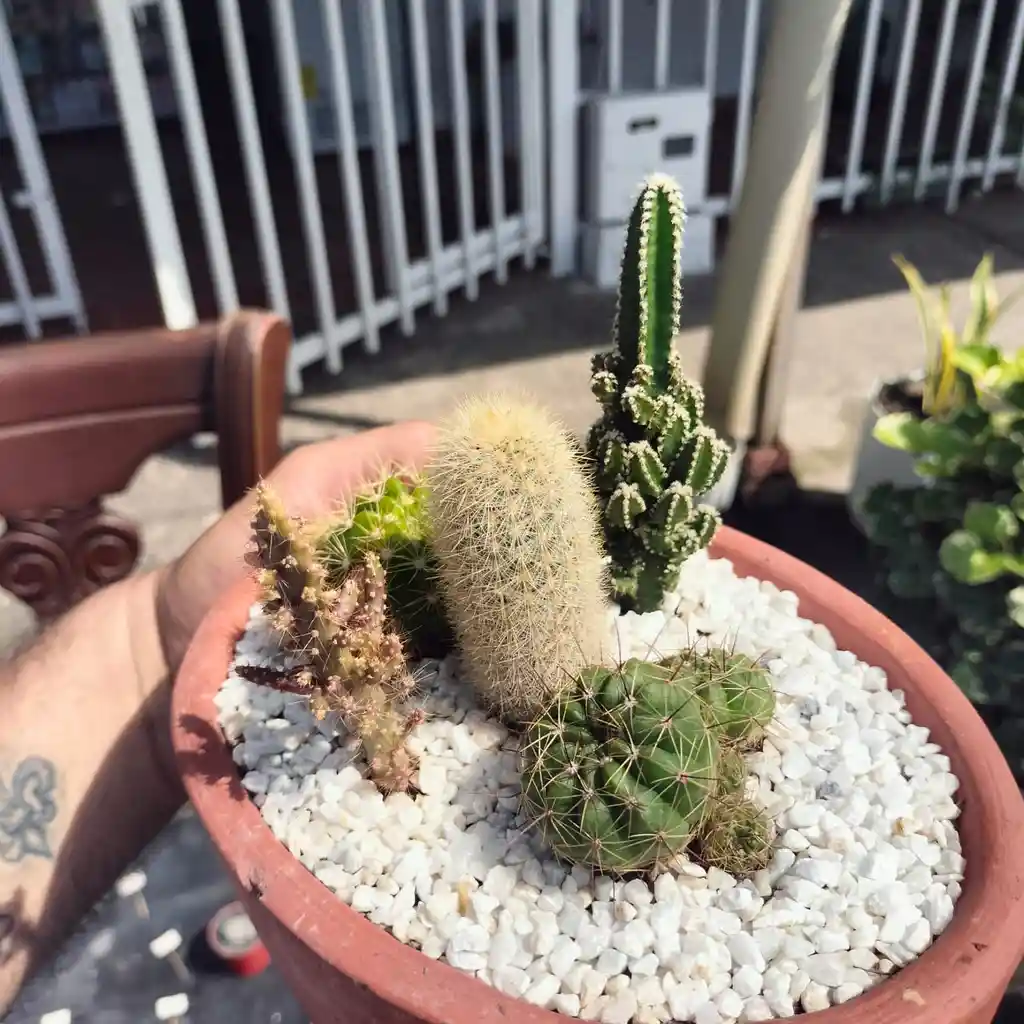 5 variedades de cactus en una maceta oasis