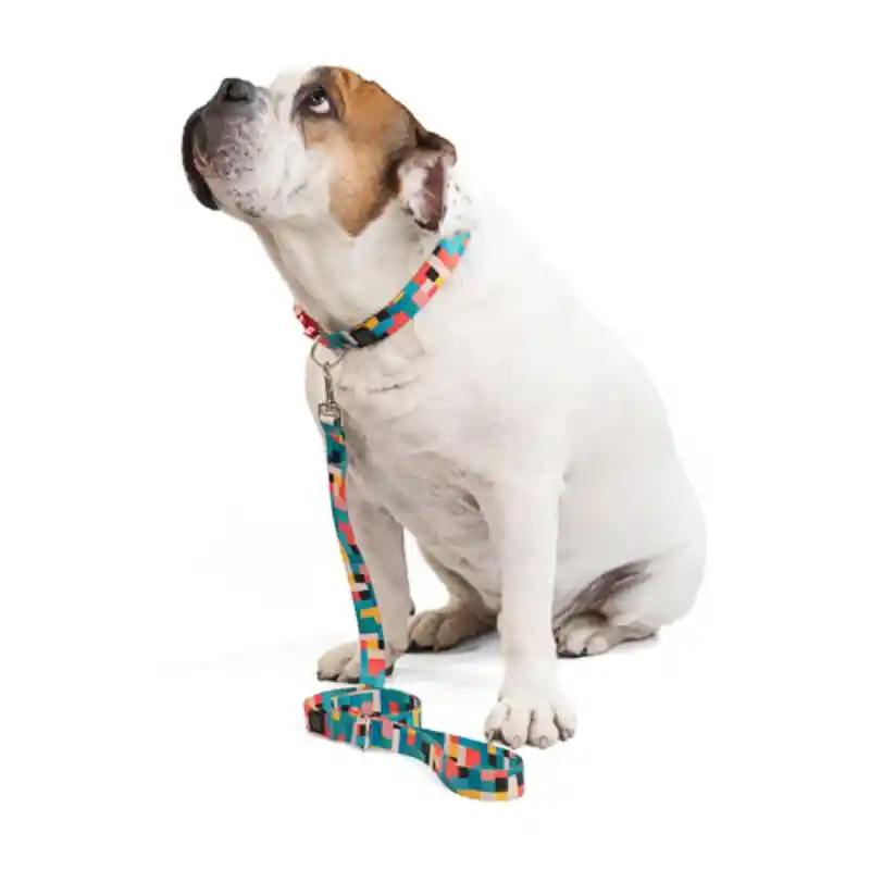 Este bicombo de collar y correa está elaborado en poliéster, sublimado con diversos y coloridos diseños. Herrajes de zamak. Es suave con el pelaje, brinda confort y seguridad.