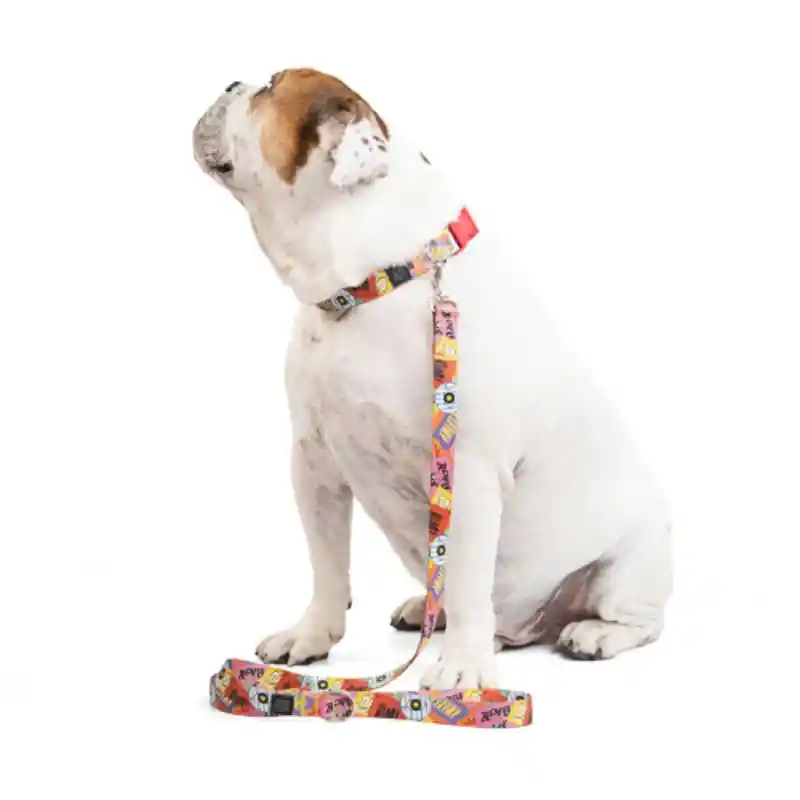Este bicombo de collar y correa está elaborado en poliéster, sublimado con diversos y coloridos diseños. Herrajes de zamak. Es suave con el pelaje, brinda confort y seguridad.