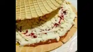DELICIOSA OBLEA CONTIENE AREQUIPE, CREMA DE LECHE, SALSA DE MORA, QUESO CUAJADA Y CHIPAS DE COLORES