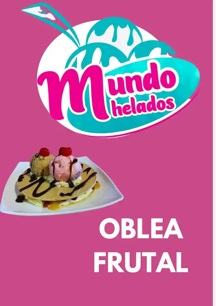 deliciosa oblea con variedad de frutas, un sabor de helado queso chantilly salsas al gusto
