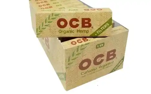 50 hojas 1 1/4 y con 50 filtros. Papel sin cloro, natural, biodegradable y con empaque reciclado 100% de cáñamo, impreso en tintas vegetales, con goma arábiga 100% natural.