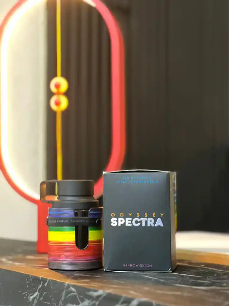 Fragancia moderna y llamativa con presentación creativa tipo “industrial”. El frasco tiene un diseño cilíndrico con acabado multicolor en degradado estilo arcoíris, acompañado de una estructura superior negra que simula un dispositivo mecánico. Está pensada como una fragancia fresca–dulce con matices frutales y amaderados, ideal para uso diario o salidas casuales. Su empaque exterior es sobrio en color negro con detalles minimalistas que contrastan con el diseño vibrante del frasco.