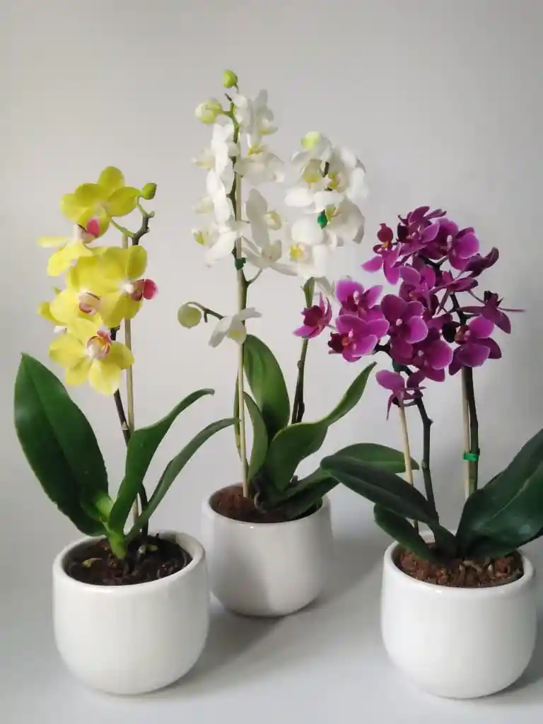 Orquidea mini de 1 2 o 3 varas con hermosas flores y algunas con varios botones, bellos y calidos colores, miden aproximadamente de 15 a 25 centimentros de alto con matera de cultivo, tienen un tiempo de afloracion de 2 a 3 meses, si desea vienen con tarjeta para dedicatorias y tarjeta de cuidados y su caja idela para regalos. Detalle elegante y delicado, regala amor, regala vida y regala una orquidea NOTA: Los colores pueden variar de acuerdo a la disponibilidad del momento