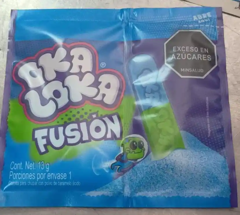 OKA LOKA FUSION vomita para chupar con polvo de caramelo acido