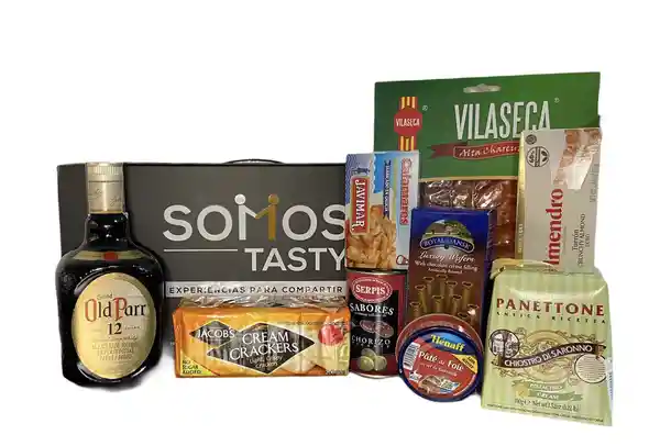 Este Tasty Regalo Navideño Incluye: Whisky Old Parr 12 Años De 750 Ml 1 Lata De Aceitunas Serpis (Sabor Según Disponibilidad) 1 Barquillos De Chocolate Royal Dansk De 100 G 1 Turrón El Almendro De 75 G 1 Panettone De Pistacho De 100 G 1 Mix De Madurados Vilaseca De 125 G 1 Paté De Foie Henaff 1 Lata De Calamares En Salsa Americana Y 1 Galleta Cream Crackers Jacobs De 200 G. .. .