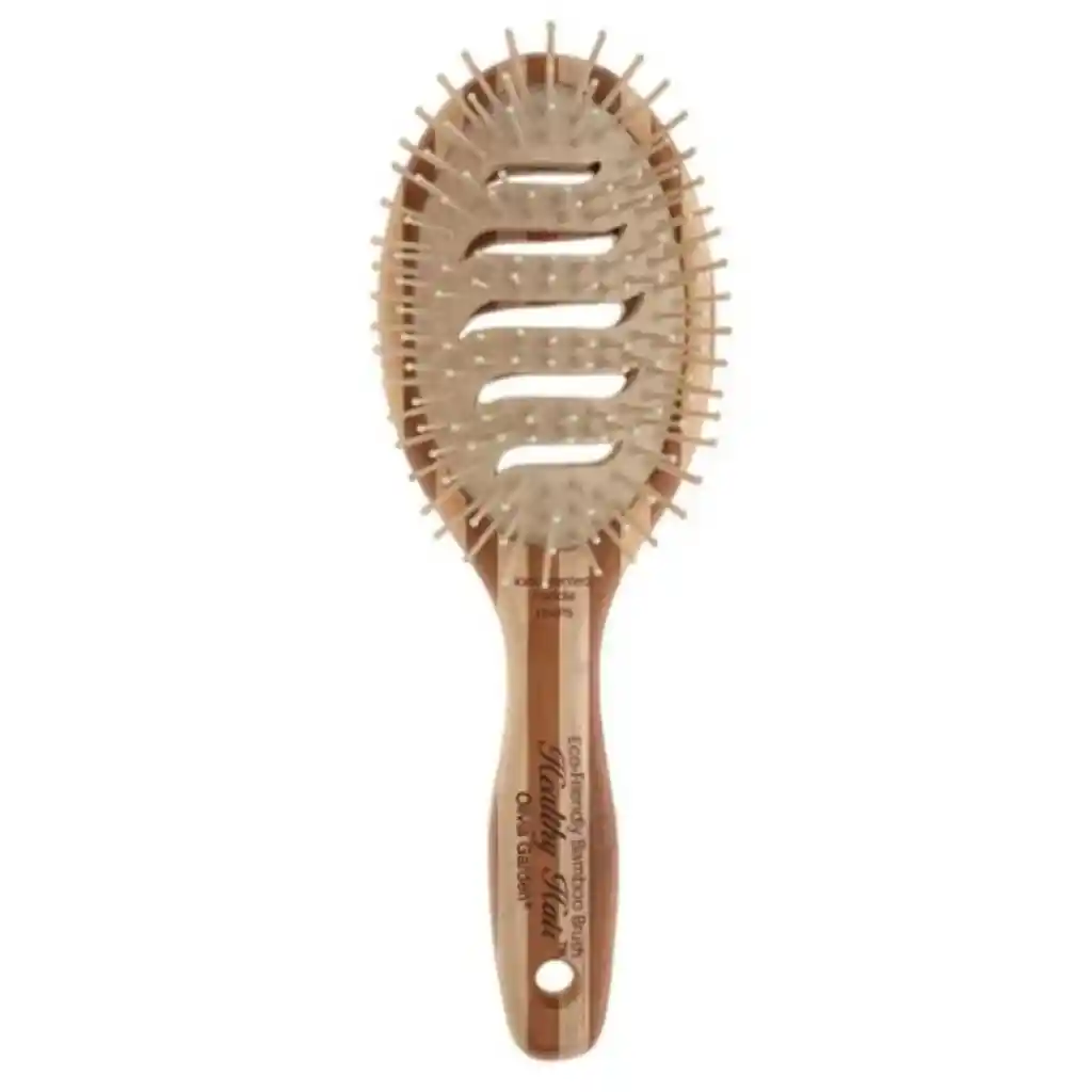 Experimenta el cuidado superior para tu cabello con el Olivia Garden Healthy Hair Ionic Bamboo Brush HHP5. Este cepillo profesional está ingeniosamente hecho de bambú, un material que no solo es más fuerte, ligero y duradero que la madera, sino también un recurso 100% natural y renovable, contribuyendo a la conservación de los bosques. Diseñado para tu bienestar, cuenta con un cómodo cojín suave y cerdas cargadas de iones que restauran el equilibrio y el brillo natural de tu cabello, a la vez que son antiestáticas. Las cómodas puntas de bola son excepcionalmente suaves con el cabello y el cuero cabelludo, garantizando una experiencia de desenredado sin tirones. Su mango ergonómico proporciona un agarre cómodo y firme. Con este cepillo, no solo cuidas tu cabello, sino también el planeta.
