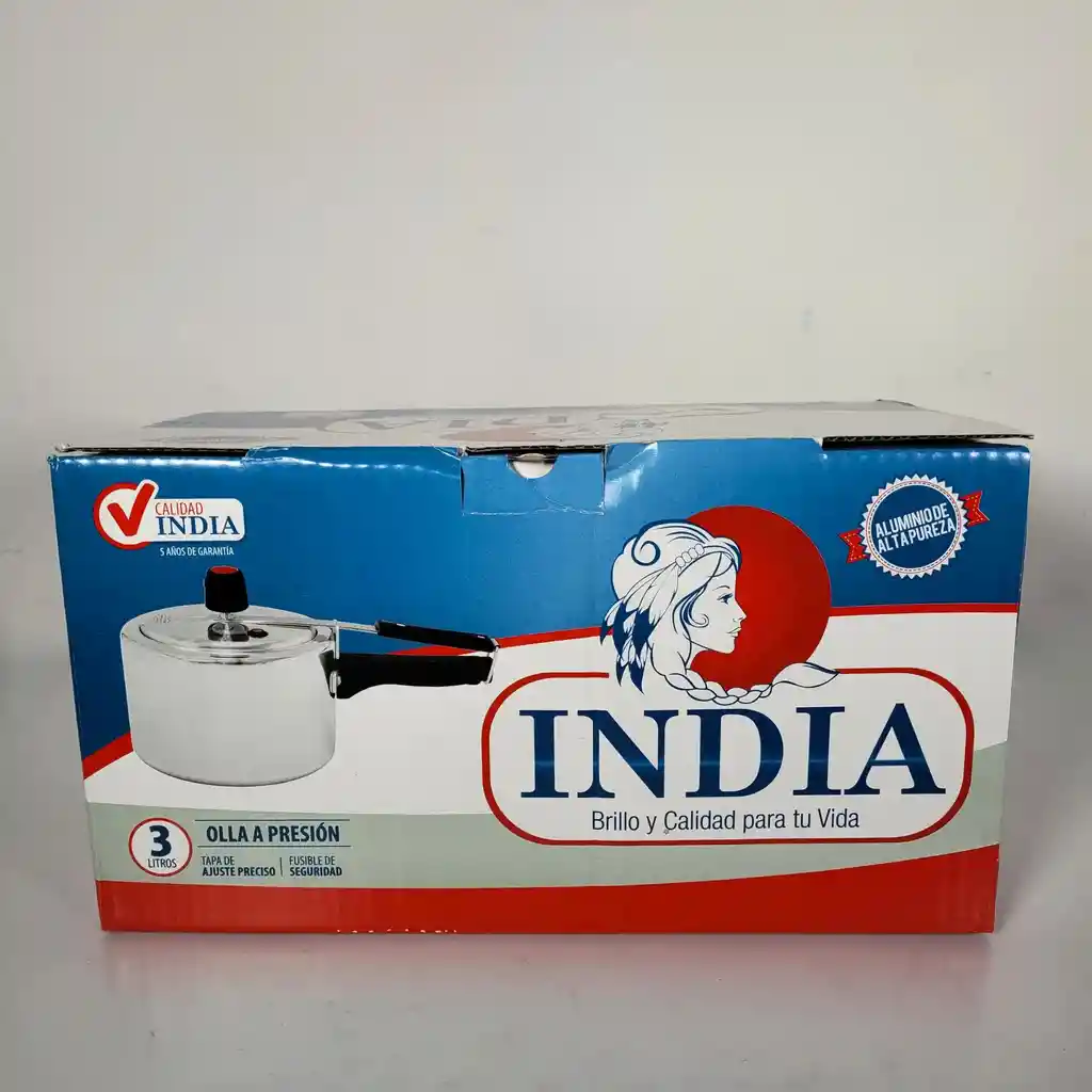 Olla a Presión India 3 Litros - Marca Super Express India Descripción: La olla a presión Super Express India de 3 litros está diseñada para brindarte seguridad y eficiencia en la cocina. Con un cuerpo de aluminio de alta calidad y tecnología de doble válvula de seguridad, esta olla te permite cocinar alimentos duros y preparar tus recetas favoritas con confianza y rapidez. Características: Capacidad: 3 litros, ideal para pequeñas porciones o familias reducidas. Material: Aluminio de la más alta calidad para una distribución uniforme del calor. Seguridad: Doble válvula de seguridad que garantiza tranquilidad al cocinar. Fácil manejo: Doble cierre para mayor comodidad al abrir y cerrar. Innovación: Sistema Practipress que permite liberar la presión de forma fácil y segura. Fabricación local: Producto hecho en Colombia