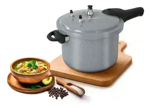Descripción: La Olla a Presión Kalley de 4.2 litros con cierre externo es una opción práctica y segura para preparar alimentos de manera rápida. Su tamaño compacto es ideal para hogares pequeños, permitiendo cocinar de forma eficiente con un diseño resistente y funcional. Su acabado rústico aporta durabilidad y estilo en la cocina. Características principales: Capacidad de 4.2 litros. Sistema de cierre externo seguro. Fabricada en material resistente y duradero. Válvula de seguridad para control de presión. Asas ergonómicas de fácil agarre. Acabado rústico. Recomendaciones de uso: Verificar el correcto cierre antes de usar. No sobrepasar la capacidad indicada. Revisar periódicamente la válvula de seguridad y limpiar después de cada uso.