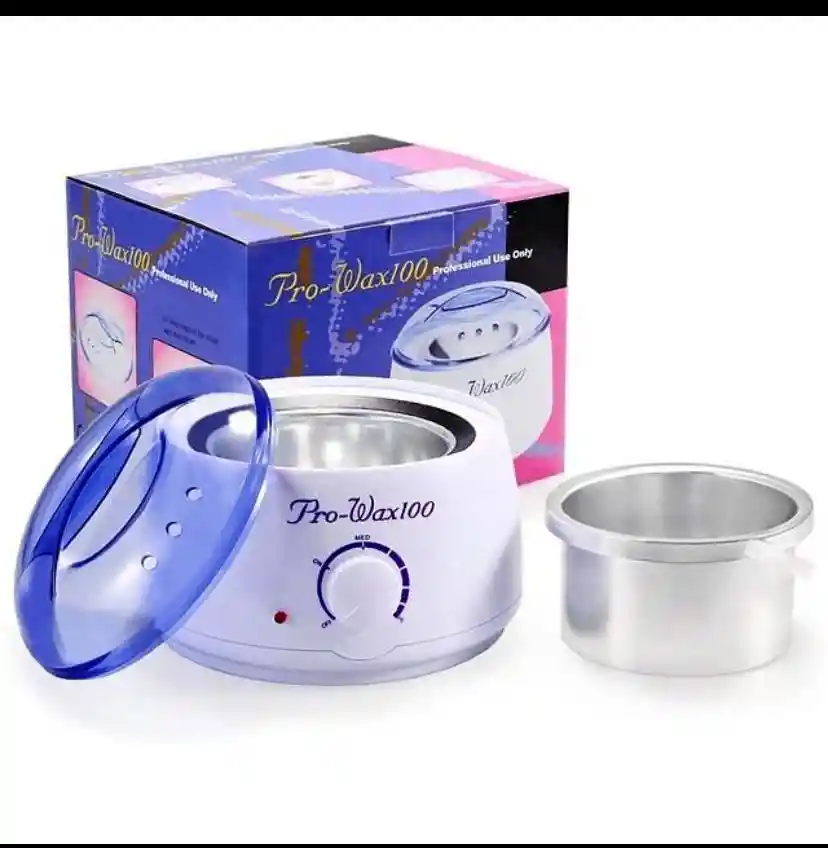 es un calentador eléctrico portátil que derrite cera sólida (perlas o bloques) hasta una temperatura ideal para depilar,