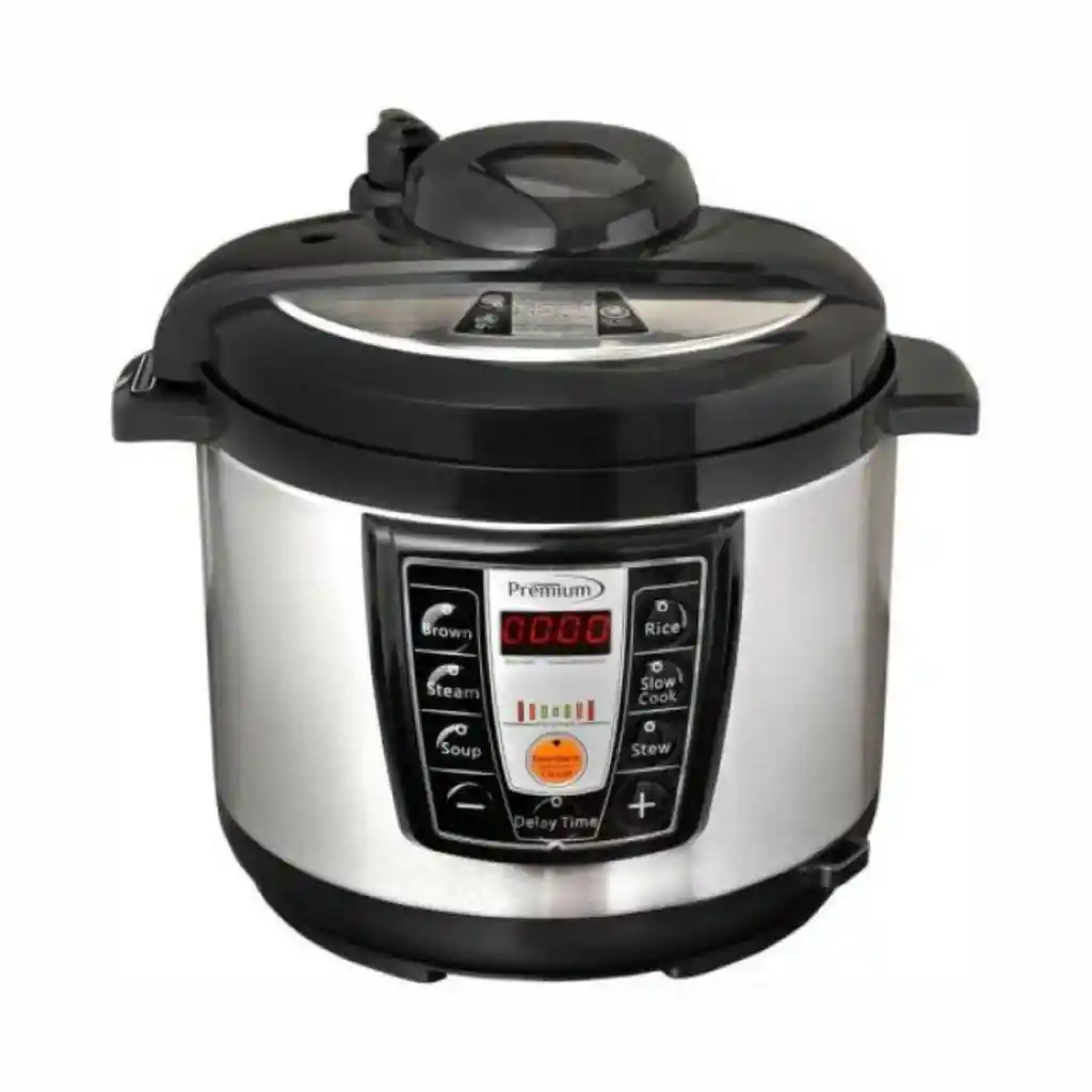 Función de retraso de hasta 24 horas. 6 Funciones programadas: dorar, vapor, sopa, arroz, cocción lenta y estofado. Control automático de presión. Pantalla LED de 4 dígitos. Programable. Recipiente de cocción removible con recubrimiento antiadherente. Función para mantener caliente. Retiene humedad, nutrientes y vitaminas. Varios mecanismos de seguridad. Incluye: cuchara de arroz, cuchara de sopa y taza de medida Potencia: 900W