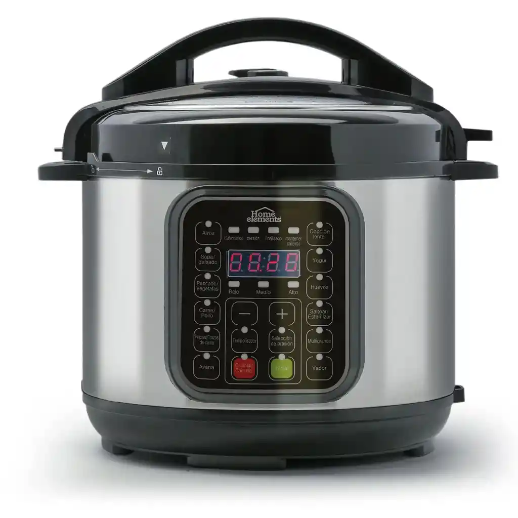 Potencia: 800W - Frecuencia: 60Hz - Voltaje: 110–120V. 12 funciones programables para preparar múltiples recetas. Capacidad de 4 litros ideal para familias o porciones grandes. Panel digital fácil de usar con opciones automáticas. Cuerpo de acero inoxidable resistente a altas temperaturas. Recipiente interno removible con doble capa antiadherente. Cocina hasta un 70% más rápido, ahorrando energía. Inicio programable hasta 24 horas para mayor comodidad. Válvula de seguridad que libera presión controladamente. Asas frías al tacto para un agarre seguro durante su uso. Incluye taza medidora y cuchara para servir. Fácil de limpiar gracias a sus piezas removibles. Diseño moderno, compacto y funcional para cualquier cocina. Este producto ha sido ambientado, Los accesorios adicionales no van incluidos, el color del producto puede tener una leve variación por la luz.