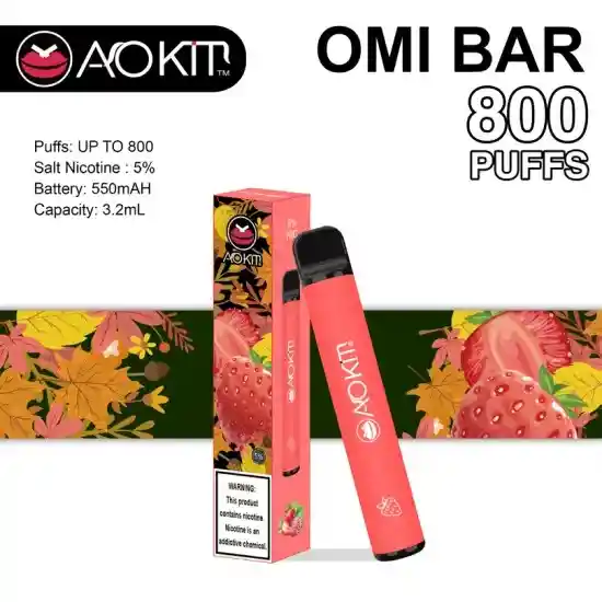 OMI BAR 800 STRAWBERRY ICE dispositivo AOKI omi bar, para 800 caladas con un sabor delicioso, este dispositivo es desechable y no se puede recargar contiene 5% (N) Prohibida la venta a menores de edad. Producto nocivo para la salud que contiene nicotina, sustancia altamente adictiva. Antes de consumir consulte las indicaciones y contraindicaciones de uso