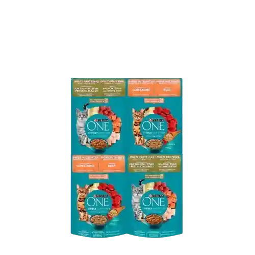 PURINA ONE POUCH CAT PACK Alimento balanceado, completo, húmedo, para gatos adultos y esterilizados de todos los tamaños. Ventajas: Sabor excepcional Conservado naturalmente Sin colorantes Textura cremosa Con colágeno y omegas en combinaciones óptimas para la salud de tu mascota.
