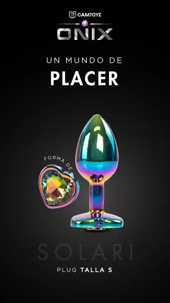 Este plug anal está fabricado con metal de alta calidad, lo que garantiza su durabilidad y resistencia. Lo que distingue al Onix Plug Anal Solari Tornaso es su deslumbrante efecto tornasol. Sus colores cambiantes y brillantes le dan un aspecto mágico y fascinante, añadiendo un toque de encanto a tus momentos íntimos. Este plug anal también presenta una base en forma de corazón, lo que lo convierte en una opción romántica y estéticamente atractiva. La base en forma de corazón no solo brinda seguridad durante su uso, sino que también agrega un elemento de estilo y elegancia. Este plug anal ha sido diseñado pensando en tu comodidad. Su forma cónica y suave facilita una inserción gradual y placentera, mientras que el material de metal de alta calidad brinda una sensación de peso y estimulación intensa