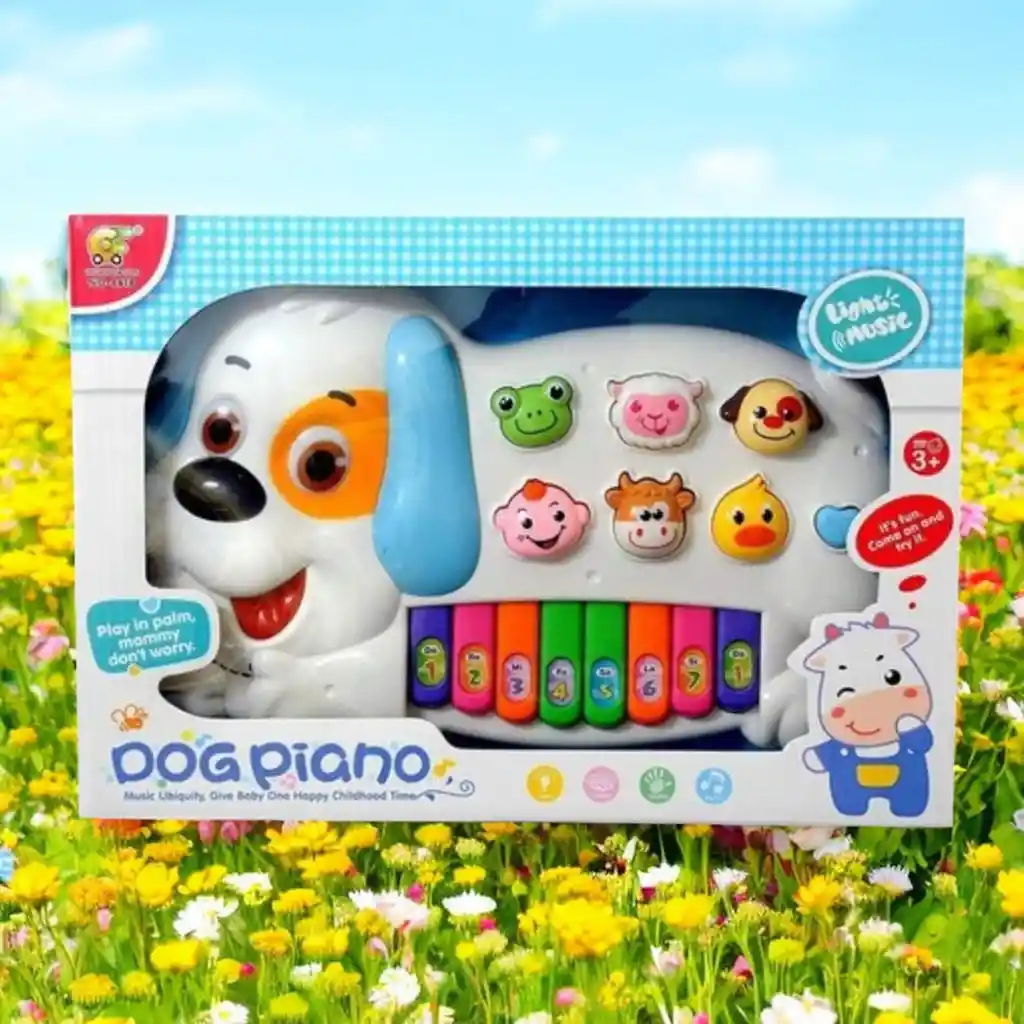 Hermoso piano de material plástico con forma de perrito que se ilumina, ayuda a tu bebe a estimular el desarrollo auditivo y motriz. ¡Regala diversion! Caracteristicas: - Se compone de 8 teclas con el sonido de las notas musicales (Do, re, mi, fa, sol, la, si, do) - 6 teclas de animales (sapo, perro, vaca, pato, cabra y un bebe) - Tiene 2 modos - Cuenta con luces *Requiere 3 pilas AA (no incluidas) Medidas piano: 27cm largo × 4cm ancho x 18cm alto Medidas caja: 33cm largo x 6.5cm ancho x 22cm alto