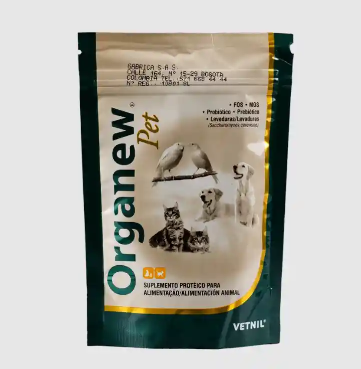 Organew® es un suplemento alimenticio y probiótico/prebiótico de alto rendimiento para mascotas y animales, compuesto por vitaminas, aminoácidos, levaduras vivas (Saccharomyces cerevisiae), FOS y MOS. Está indicado para mejorar la digestión, estimular el apetito, aumentar el peso y optimizar el rendimiento