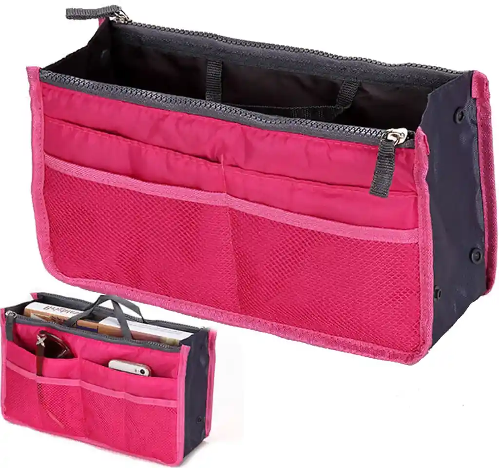 AL0000001686 MATERIAL: Hecho de nylon duradero, fácil de limpiar con una toalla húmeda, plegable, peso ligero. TAMAÑO: L * W * H: 28 X 8.5 X16.5 cm acomoda artículos de tocador, desorden, llave, teléfono celular, tarjetas, libros, artículos de viaje, etc. DISEÑO ÚNICO: Insert Organizer tiene 13 compartimentos / bolsas pequeñas a grandes donde puede guardar sus cosas, con dos bolsas con cremallera para sus cosas importantes. Puede usarlo para guardar su botiquín de primeros auxilios, deslizarlo en su bolsa principal para almacenamiento adicional, usarlo como una pequeña bolsa de viaje durante la noche o cualquier otra cosa. PORTÁTIL: El diseño plegable permite un fácil almacenamiento sin ocupar espacio. Con las asas incorporadas, es fácil de transportar a cualquier lugar. MULTIUSO: Perfecto para viajes, hogar, nuestra puerta, dormitorio, baños y otro almacenamiento, bolsa en bolsa. Perfecto para guardar cosméticos, lápiz labial, teléfono celular, bolígrafos, llaves, monedero, iPad mini, auriculares, maquillaje y otros artículos esenciales.