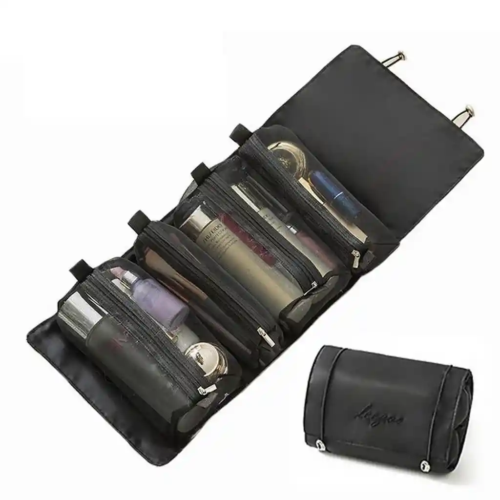 Este práctico neceser 4 en 1 cuenta con cuatro bolsas desmontables con cierre, permitiendo su uso individual o en conjunto para mayor versatilidad al viajar. Fabricado en nailon de alta calidad, es ligero, resistente al agua, al desgaste y fácil de limpiar, mientras que sus compartimentos de malla transparente facilitan la visualización y acceso a los cosméticos. Su diseño compacto ofrece un almacenamiento eficiente para productos de belleza, brochas, anteojos y artículos de cuidado personal, convirtiéndolo en el compañero ideal para cualquier viaje. Además, es un regalo perfecto para ocasiones especiales como Navidad, Año Nuevo o cumpleaños. Ficha Técnica: Dimensiones: 23 cm x 54.5 cm Material: Nylon - Poliester ** _Para defectos de fábrica o retractos: \_Por favor revise el producto apenas lo reciba y antes de usarlo. No aplican ley de retracto o defectos de fábrica luego de usar el producto. Se manejan máximo 5 días para reportar defectos de fábrica (por ejemplo, producto funciona mal, piezas faltantes, rotas, etc). Para hacer efectiva la devolución el producto debe devolverse con el empaque original, el cual debe estar en buen estado, incluir todos los documentos y las partes completas y sin daños.