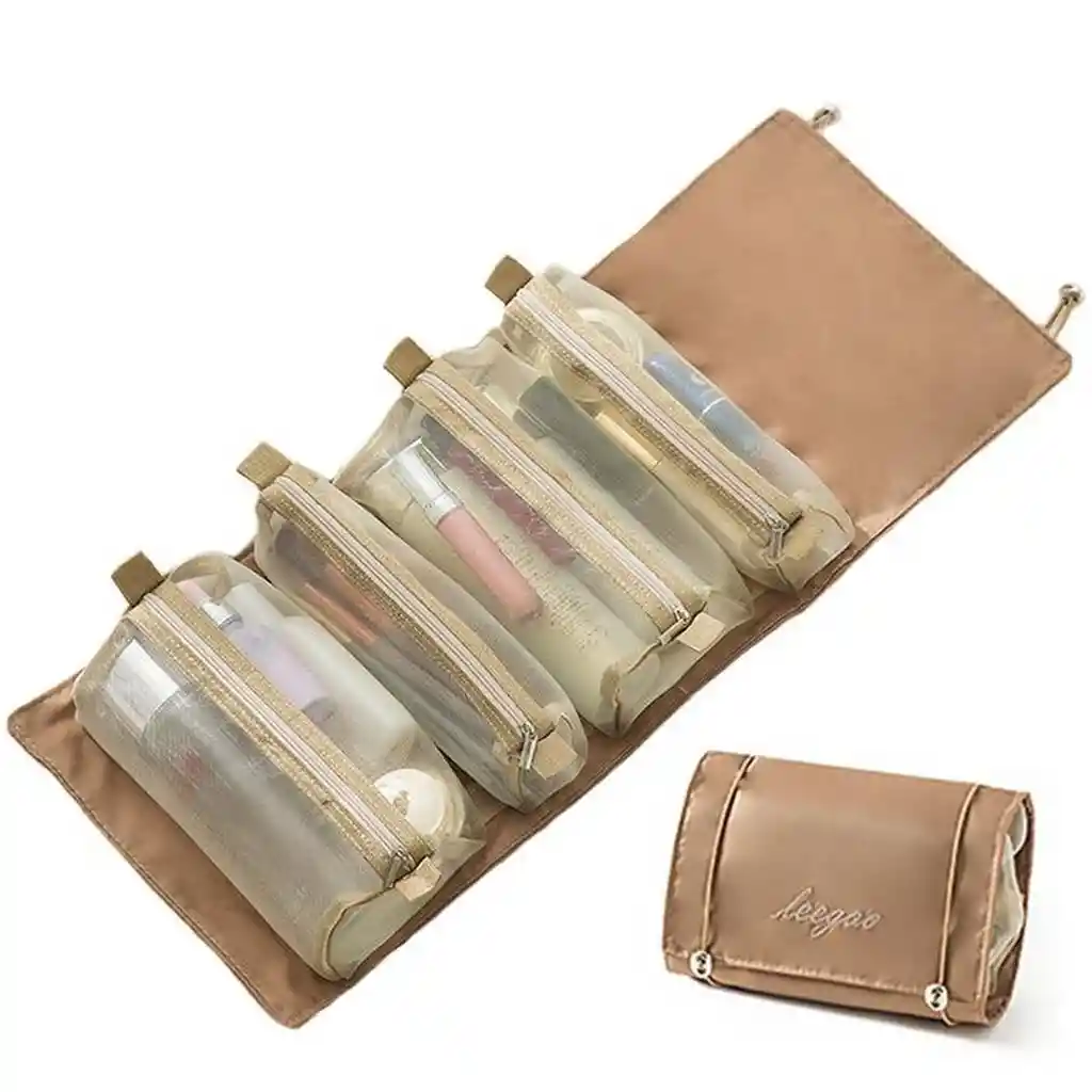 Este práctico neceser 4 en 1 cuenta con cuatro bolsas desmontables con cierre, permitiendo su uso individual o en conjunto para mayor versatilidad al viajar. Fabricado en nailon de alta calidad, es ligero, resistente al agua, al desgaste y fácil de limpiar, mientras que sus compartimentos de malla transparente facilitan la visualización y acceso a los cosméticos. Su diseño compacto ofrece un almacenamiento eficiente para productos de belleza, brochas, anteojos y artículos de cuidado personal, convirtiéndolo en el compañero ideal para cualquier viaje. Además, es un regalo perfecto para ocasiones especiales como Navidad, Año Nuevo o cumpleaños. Ficha Técnica: Dimensiones: 23 cm x 54.5 cm Material: Nylon - Poliester ** _Para defectos de fábrica o retractos: \_Por favor revise el producto apenas lo reciba y antes de usarlo. No aplican ley de retracto o defectos de fábrica luego de usar el producto. Se manejan máximo 5 días para reportar defectos de fábrica (por ejemplo, producto funciona mal, piezas faltantes, rotas, etc). Para hacer efectiva la devolución el producto debe devolverse con el empaque original, el cual debe estar en buen estado, incluir todos los documentos y las partes completas y sin daños.