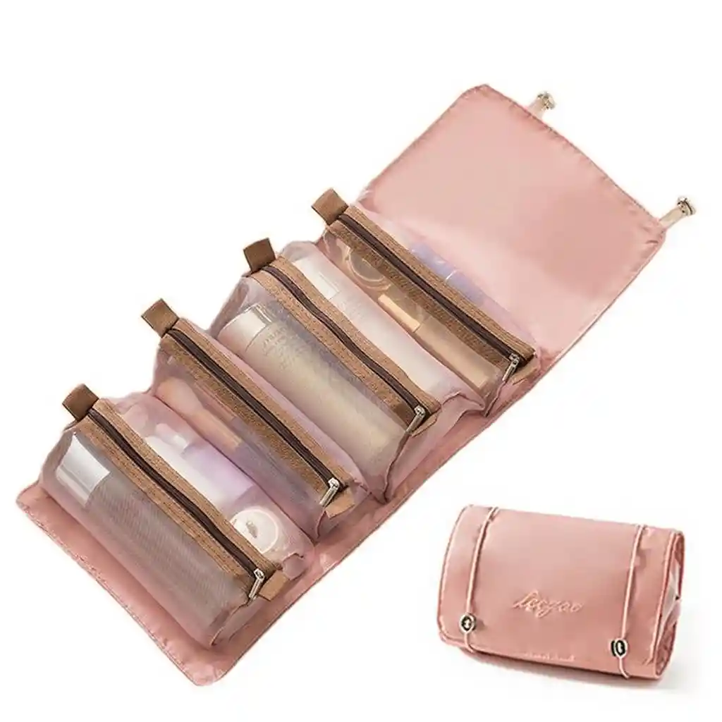 Este práctico neceser 4 en 1 cuenta con cuatro bolsas desmontables con cierre, permitiendo su uso individual o en conjunto para mayor versatilidad al viajar. Fabricado en nailon de alta calidad, es ligero, resistente al agua, al desgaste y fácil de limpiar, mientras que sus compartimentos de malla transparente facilitan la visualización y acceso a los cosméticos. Su diseño compacto ofrece un almacenamiento eficiente para productos de belleza, brochas, anteojos y artículos de cuidado personal, convirtiéndolo en el compañero ideal para cualquier viaje. Además, es un regalo perfecto para ocasiones especiales como Navidad, Año Nuevo o cumpleaños. Ficha Técnica: Dimensiones: 23 cm x 54.5 cm Material: Nylon - Poliester ** _Para defectos de fábrica o retractos: \_Por favor revise el producto apenas lo reciba y antes de usarlo. No aplican ley de retracto o defectos de fábrica luego de usar el producto. Se manejan máximo 5 días para reportar defectos de fábrica (por ejemplo, producto funciona mal, piezas faltantes, rotas, etc). Para hacer efectiva la devolución el producto debe devolverse con el empaque original, el cual debe estar en buen estado, incluir todos los documentos y las partes completas y sin daños.